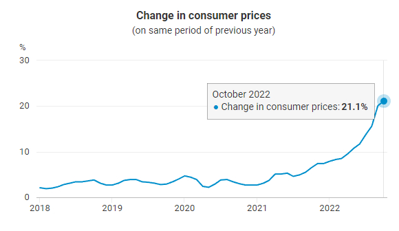 周三公布的数据显示,匈牙利10月份通胀率达到了21.1%,是自1996年10月以来的最高水平,远高于欧盟的平均通胀率。当日,匈牙利总理府部长古亚什·盖尔盖伊立即宣布增加限价食品的种类。