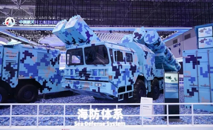 航天科工海防体系成建制展出了集指挥、控制、通信、情报、侦察、打击和作战效果评估于一体的完整对海防御系统,为构建沿海防御提供了完善、灵活的整体解决方案。YJ-18E导弹武器系统采用“亚声速巡航+超声速打击”体制,兼顾亚声速大航程、末段超声速攻击的独特优势,可远程隐蔽打击大中型水面舰艇及编队,同时具有攻击小型舰艇以及陆上固定目标的能力。