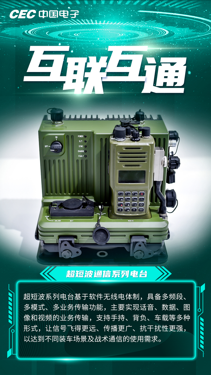 超短波系列电台基于软件无线电体制,具备多频段、多模式、多业务传输功能,主要实现话音、数据、图像和视频的业务传输,支持手持、背负、车载等多种形式,让信号飞得更远、传播更广、抗干扰性更强,以达到不同装车场景及战术通信的使用需求。