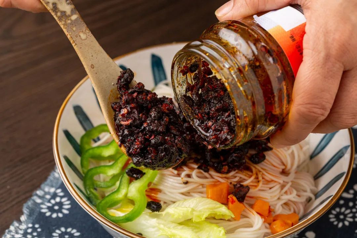 这些品牌不仅在国民度上步步紧逼老干妈,在产品力上甚至更抓人眼球。以老干妈为代表的传统辣酱,朴素得只能用来拌饭佐面,但紧跟其后的新兴辣酱们早就卷起来了,它们内容物的丰富程度,与其说是一瓶辣酱,不如说倒出来端上桌就是一盘菜。