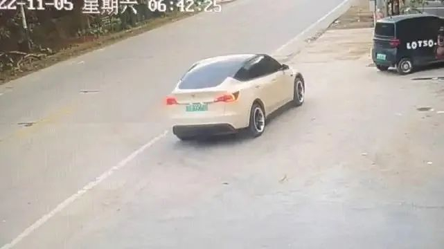 根据网络视频显示,一辆白色的特斯拉从马路上缓缓驶向路边一个商铺门口时,突然转向驶上马路,随后在路上一路高速狂奔。车辆做出紧急避让的动作惊险避开一辆电动自行车后,继续在道路上高速行驶。车辆在撞上一辆同向行驶的两轮摩托车后,又撞上一辆对向车道上的自行车,骑自行车男子被撞倒在地;此后,车辆又撞上一辆三轮摩托车,摩托车几乎被撞散架;失控的特斯拉侧向撞向路边的一根电线杆和一辆货车,最终才停下来。