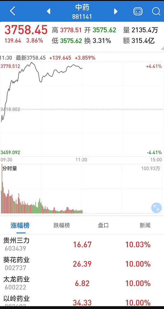 医药股狂欢,中药板块今日最佳!大金融板块吸金,招商银行涨7%