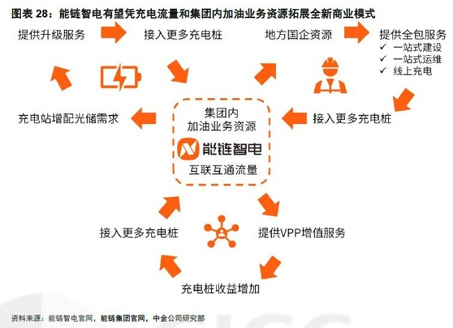 中金认为,能链掌握了较为丰富的客户流量资源和地方政府资源,并拥有全套充电服务方案矩阵,可借助团油覆盖的2.5万座加油站资源,快速触达地方国企,结合线上线下充电服务方案,提供全包模式。凭借互联互通业务积累的流量资源,拓展光储充升级和虚拟电厂模式。