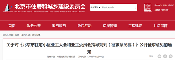 《北京市住宅小区业主大会和业主委员会指导规则(征求意见稿)》公开征求意见
