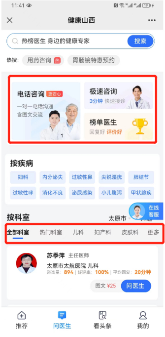 附:健康山西预约流程、在线问诊流程