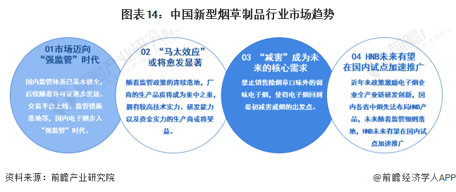 在电子烟盛行的时代,行业缺乏政策监管、国家标准导致广告宣传虚假夸张、吸食电子烟人群低龄化趋势严峻、添加不安全成分等问题频出,对消费者健康带来巨大的威胁。自2021年,《中华人民共和国烟草专卖法实施条例》第三次修订规定“电子烟等新型烟草制品参照卷烟有关规定执行”以来,电子烟正式纳入烟草体系监管,随着涉及许可证管理、产品技术审评、交易管理等主要监管内容的细则陆续发布,国内监管体系已基本健全,后续随着许可证逐步发放、交易平台上线、监管措施落地等,国内电子烟步入“强监管”时代。随着管理办法的推进,前瞻认为,已经铺设了一定线下销售网点的龙头企业仍占据先发优势,行业“马太效应”或将愈发显著;此外随着政策的逐步推广,电子烟核心需求重新回到“减害”,未来HNB产品也有望进行试点推广。