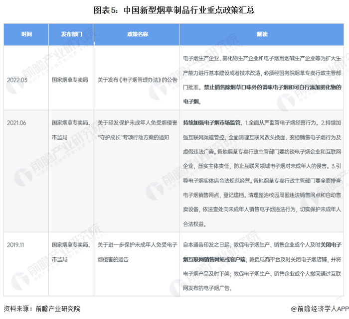 从发布政策规划来看,中国对电子烟管控逐年趋严,自2019年关闭互联网电子烟销售渠道,到2022年颁布《电子烟管理办法》,中国电子烟行业发展逐步趋于规范,这对行业未来长期发展提供了稳定健康的政治发展环境,预计会为行业发展带来利好。