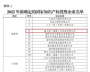 嘉文丽(福建)化妆品有限公司荣获2022年度国家知识产权优势企业