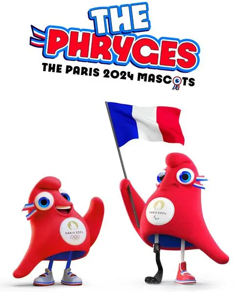 组委会介绍称,“弗里吉”是法国大革命时期流行的红色小帽“弗里吉亚帽”的拟人化形象。吉祥物主体呈三角形,配色上以红色为主,辅以蓝色和白色,这也与法国国旗的三种颜色吻合。