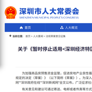 深圳市人大常委会办公厅近日对《关于暂时停止适用〈深圳经济特区房地产转让条例〉有关规定的决定(草案)》公开征求意见,表明深圳市预售资金监管正从过去的金融机构监管向行政监管转变,这是落实住房城乡建设部等三部门《关于规范商品房预售资金监管的意见》,将预售资金监管统一到行政监管模式的具体体现。