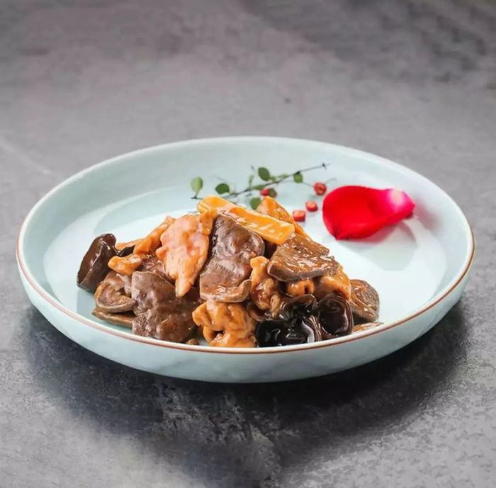 爆三样属于中国特色名菜,属于鲁菜。食之口感层次丰富,酱香出头,淡甜收口,里味鲜香,浓淡适宜。