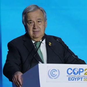 ▲当地时间2022年11月7日,联合国秘书长古特雷斯在《联合国气候变化框架公约》第二十七次缔约方大会发言,呼吁各国团结起来应对气候变化。图/视觉中国