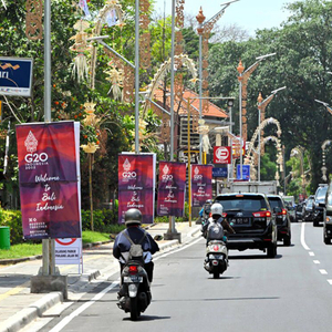 11月15~16日,二十国集团领导人第十七次峰会在印度尼西亚巴厘岛举行。图为巴厘岛街道旁的G20宣传旗帜 视觉中国图