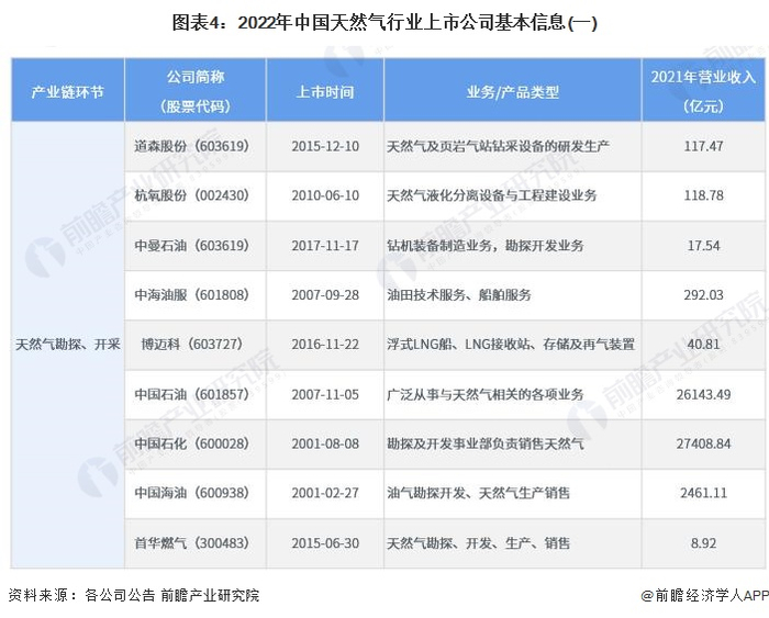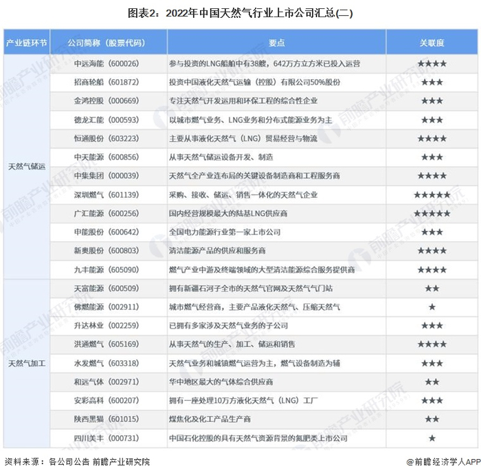 本文核心数据:天然气行业上市公司汇总,天然气行业上市公司业务布局