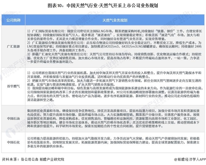 4、天然气行业-天然气开采上市公司业务规划对比