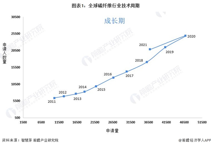 本文核心数据:全球碳纤维行业技术周期,全球碳纤维行业专利申请量及授权量,全球碳纤维行业专利法律状态