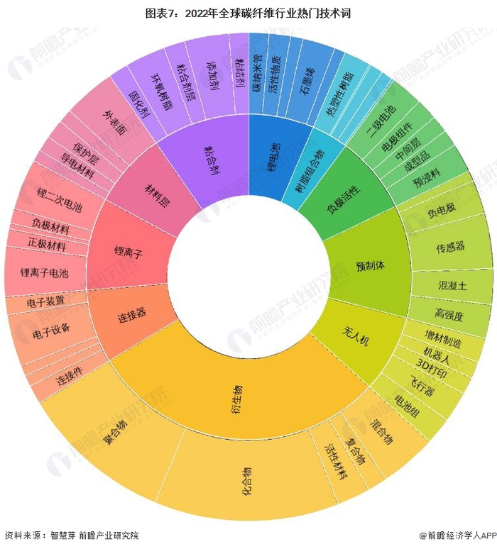 全球碳纤维行业前十大热门技术词包括树脂组合物、负极活性、预制体、无人机、衍生物、连接器、锂离子、材料层、粘合剂、锂电池等。具体情况如下: