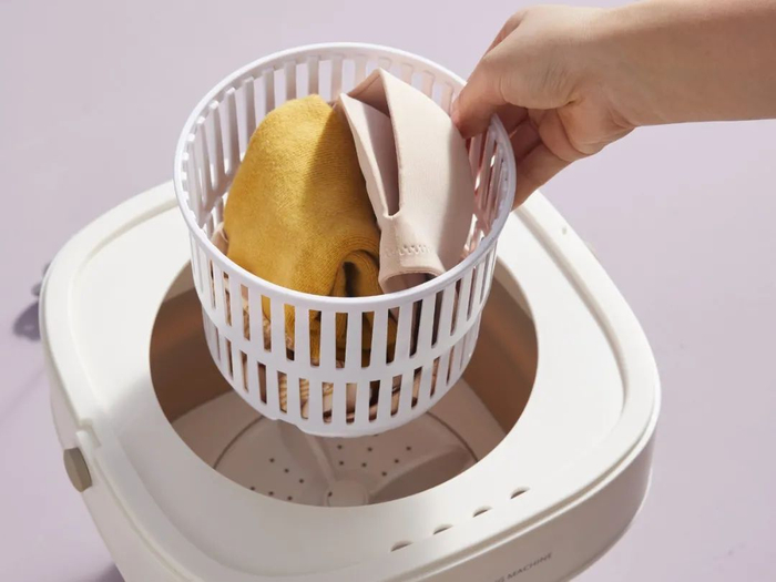 自带一个沥水篮,搭配沥水功能,可以帮你把衣物沥掉水分。