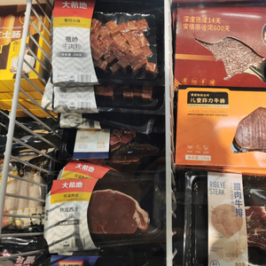 新京报记者统计上述13款牛排产品还发现,9款调理牛排中,有4款在产品包装上标示了“整切”宣传语。其中“盒马”湿式熟成干腌谷饲眼肉牛排强调“眼肉原部位整切”,“大希地”香草黑胡椒整切西冷牛排包装显示“整切入味”,“大希地”熟成西冷牛排在包装上强调“100%无拼接,原肉整切”,“圣农”家庭西冷牛排标示“整切牛排”。