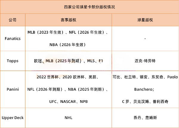 在球星卡厂商的竞争中,由于IP代理权具有排他性,因此成为一家公司的核心壁垒,也是成本支出大头——在总成本中能占据40%以上。目前,NBA的代理权在帕尼尼手中,另外,帕尼尼还有英超联赛、2022年世界杯、2020年欧洲杯等顶级赛事的IP所有权,可谓球星卡市场上的绝对巨头。