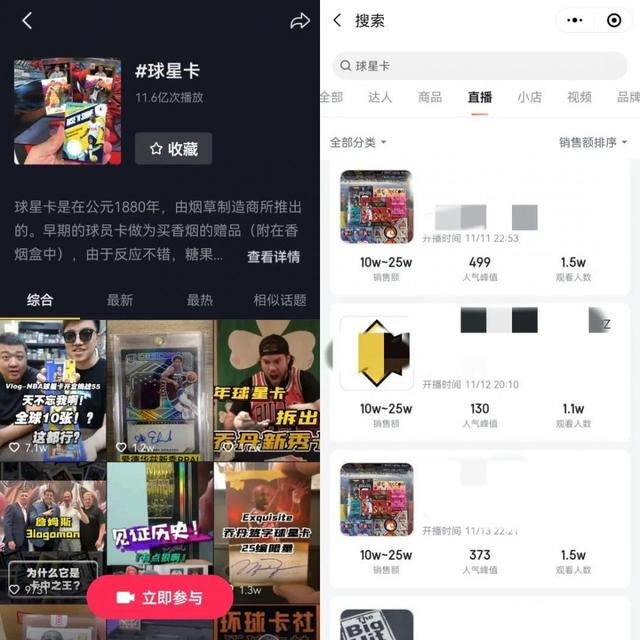 国内,在抖音等短视频平台,#球星卡#话题播放量已经超11.6亿次,不少直播拆卡的直播间一场销售额在10万—25万元之间;双十一期间,售卖球星卡的睿卡潮玩旗舰店登上了天猫双十一潮玩店铺销量第12名,相比618的潮玩榜单前进了6名。