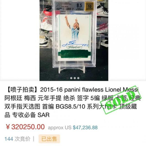 即使是帕尼尼在11月9日新发售的系列,球星卡的价格也在上涨。一张新出的梅西球星卡拍卖价在1.5万元,大程表示,如果这次世界杯梅西表现不错,那价格还会继续上涨,“一盒出一张这个就是赚了,毕竟是梅西最后一届世界杯了。”