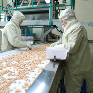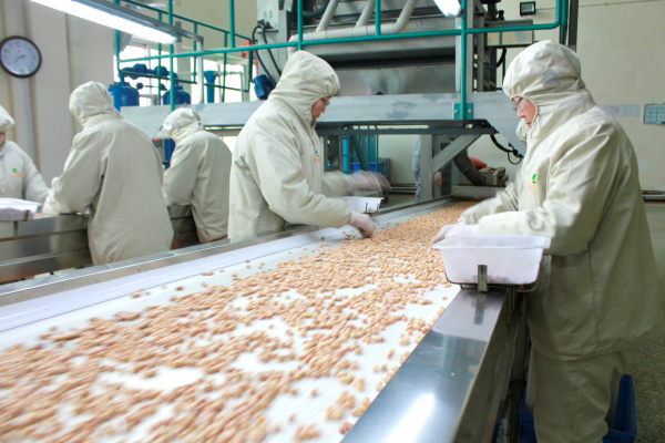 辽宁正业花生产业发展有限公司工人在生产线上作业