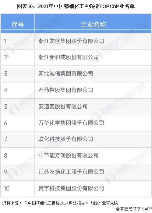 更多本行业研究分析详见前瞻产业研究院《中国精细化工行业市场前瞻与投资战略规划分析报告》,同时前瞻产业研究院还提供产业大数据、产业研究、政策研究、产业链咨询、产业图谱、产业规划、园区规划、产业招商引资、IPO募投可研、IPO业务与技术撰写、IPO工作底稿咨询等解决方案。