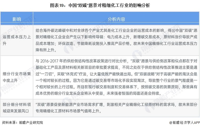 “双碳”战略实际上通过带有约束条件的发展,不断优化行业结构,提升行业技术水平,促进经济朝更高质量和更可持续的方向发展。据2021石化产业发展大会发布的分析,未来“双碳”战略的提出将对精细化工行业的运营模式、产品结构等将产生颠覆式影响,也将推动业内细分市场景气度提升。