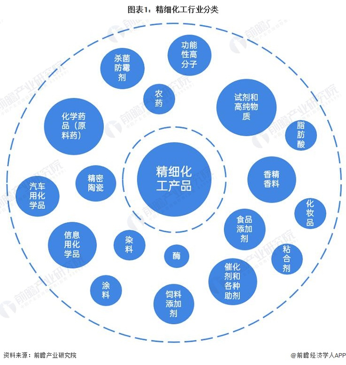 精细化工指生产精细化学品的工业,通称精细化学工业。该行业产品指具有特定应用功能,技术密集,商业性强,产品附加值较高的化工产品。