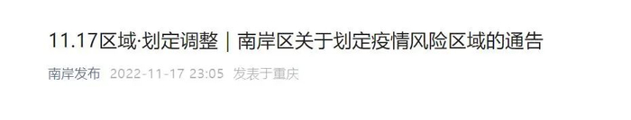 重庆市南岸区新型冠状病毒肺炎疫情防控指挥部发布关于南岸区划定疫情风险区域的通告。