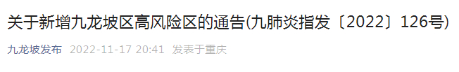 重庆市九龙坡区新型冠状病毒肺炎疫情防控工作指挥部关于新增九龙坡区高风险区的通告(九肺炎指发〔2022〕126号)。
