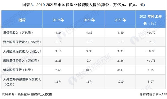 ——中国保险业经营情况:2021年保险业累计实现原保费收入4.49万亿元,同比微降0.79%