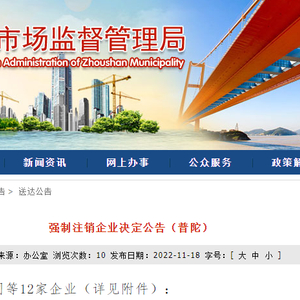 你企业被吊销营业执照已逾三年,至今仍未办理注销登记手续。舟山市市场监督管理局于2022年1月04日发出公告,催告你企业依法组织清算并在规定期限内办理清算组备案,或者及时办理注销登记,现催告、通知期限已届满,你企业仍未履行上述义务。经向有关部门了解,你企业均无欠缴税款、未领用发票或已缴销全部领用发票,无在缴社保人员和拖欠工资记录,无登记在册的不动产权利,无有效存续的知识产权,无在诉案件或者待执行案件,无股权被冻结情形。本局于2022年9月20日发出《强制注销企业告知公告》,你企业未提出听证和陈述申辩。根据《中华人民共和国行政许可法》第七十条第(四)项的规定,本局决定强制注销你企业,请自收到本决定之日起十日内将营业执照正、副本缴回我局。