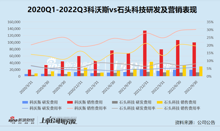 对于两家上市公司而言,销售费用和研发费用一直以来都是费用的大头。而根据图中可以看出,科沃斯与石头科技的研发费用与销售费用存在以下两点共性。