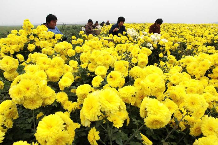 大虹桥乡南古村村民正在采摘怀菊花。王琳锋摄