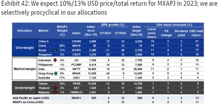 同时,高盛还将中国香港市场评级从“减持”提升至市场权重,将韩国市场的评级上调至“增持”。