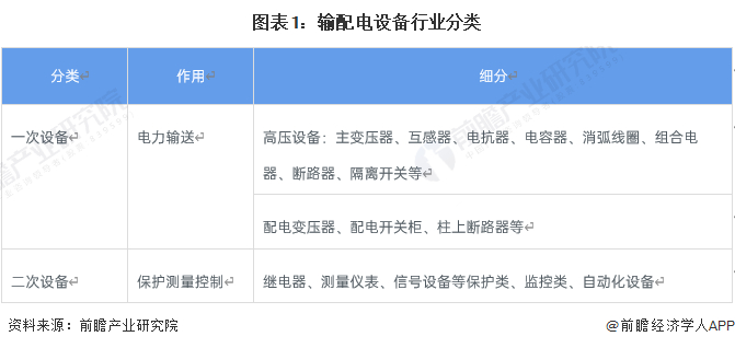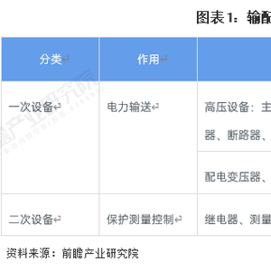 输配电设备按设备作用主要可以分为一次设备和二次设备,其中一次设备主要用于电力传输,包括变压器、开关、互感器、绝缘子、避雷器等;二次设备主要用于对电力设备的保护测量控制,包括继电器、测量仪表、信号设备等。