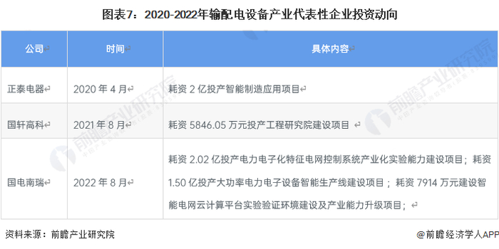 中国输配电设备产业代表性企业投资动向