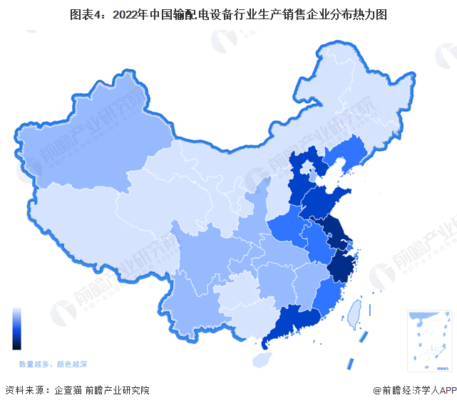 输配电设备产业链区域热力地图:东部沿海地区为主,江苏、浙江最为集中