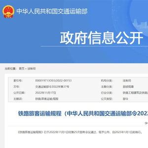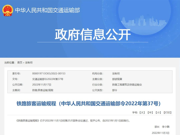 新版《铁路旅客运输规程》将于2023年1月1日起实施。