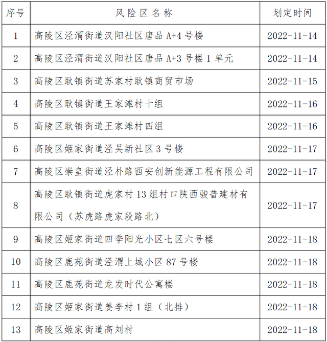 19.未央区徐家湾街道徐家湾社区东三厂家属院(11月17日划定的高风险区未央区徐家湾街道电梯厂家属院3号楼2单元并入此新划定高风险区);