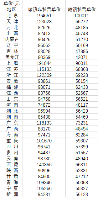31省平均工资发布:京沪非私营单位超19万元