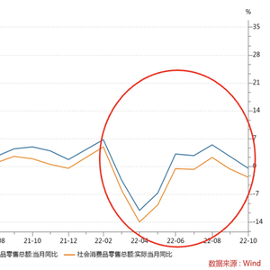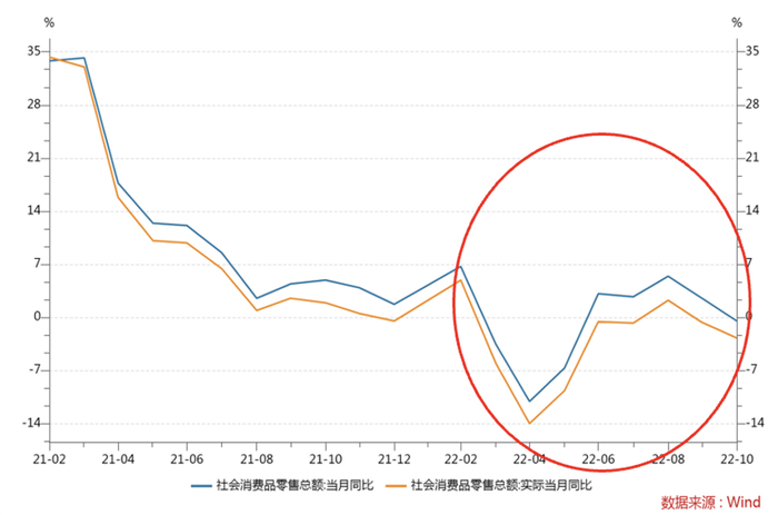 如果数据停留在8月份,可以说消费走出了非常典型的V型,但事情并不是这样,到8月份之后掉头向下,9月份实际增速跌至负区间,10月份名义实际双双转负,名义是-0.5%,实际是-2.74%。
