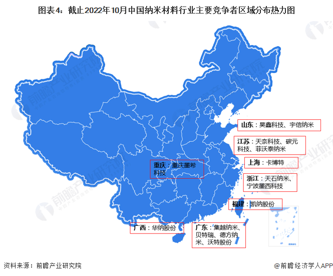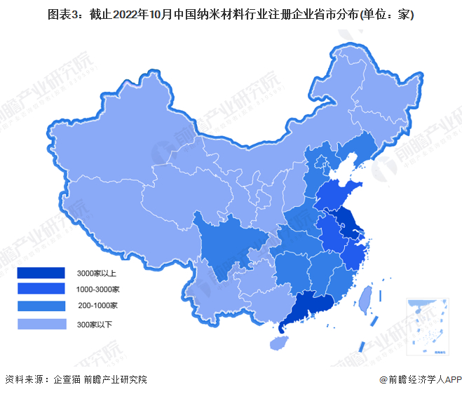 纳米材料行业区域热力地图:广东省和江苏省分布最为集中