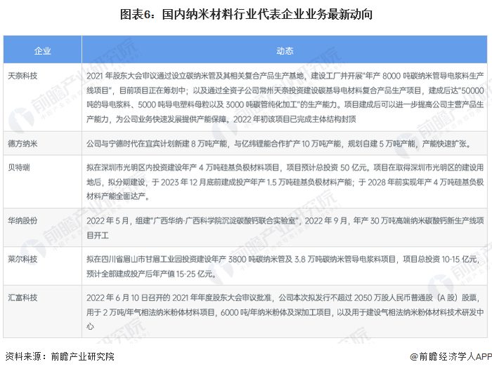 2022年以来,纳米材料行业部分企业接连开展产能扩增计划: