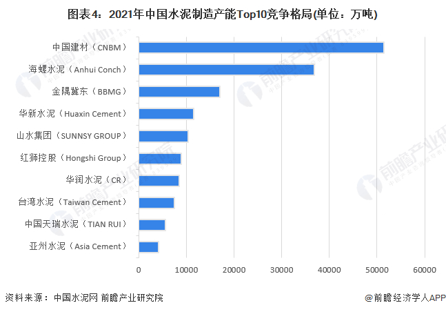 4、中国水泥制造行业企业布局及竞争力评价