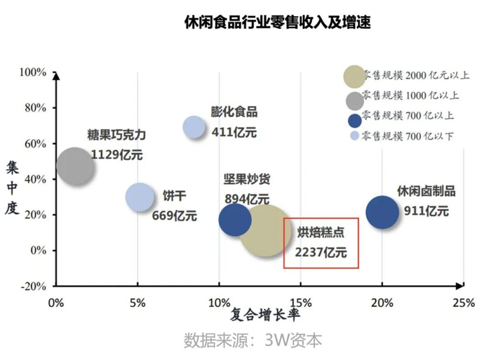 第二,整个烘焙赛道的连锁化率特别低,集中率特别低,*的连锁品牌数量也只有上千家。