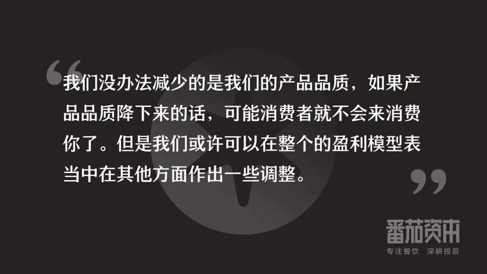 今天我们没办法减少的是我们的产品品质。如果产品品质降下来的话,可能消费者就不会来消费你了。但是我们或许可以在整个的盈利模型表当中,在其他方面做一些调整。