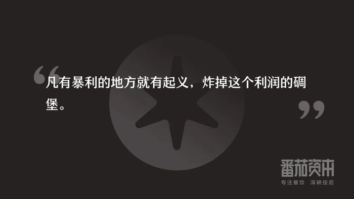 强者发挥优势,弱者就要能吃苦耐劳。作为我们后来的创业者,要找到在餐饮行业、餐饮品类里面有的高利润的赛道、高利润环节,对于你来说,可能你需要做的事情就是降低对利润的预期,往往你就能够带来这样一个发展的可能性。